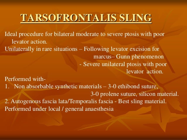 Tarso Frontalis Sling Surgery / These patients were seen in the ico's oculoplastic service between january and july 2009; Tarso Frontalis Sling Surgery / Will that also solve the lid lag problem that i am having now.